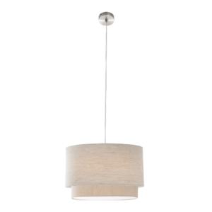 Hängeleuchte LEE Metall Nickel matt, Textil beige, Höhe kürzbar, Ø: 40 cm, H: 150 cm, exkl. 1x E27 40W 230V