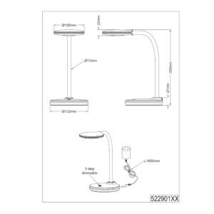 Tischleuchte CARMEN, Kunststoff schwarz, dimmbar, 3-Stufen, Flexo